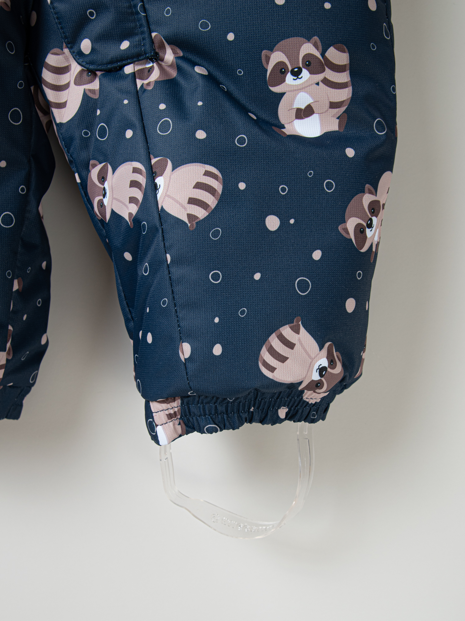 Температурный режим от 0 до -30 °C в зависимости от наличия ветра и осадков, дополнительных слоев одежды, подвижности ребенка и продолжительности прогулки. В комплекте идут брендированные отстежные штрипки.
