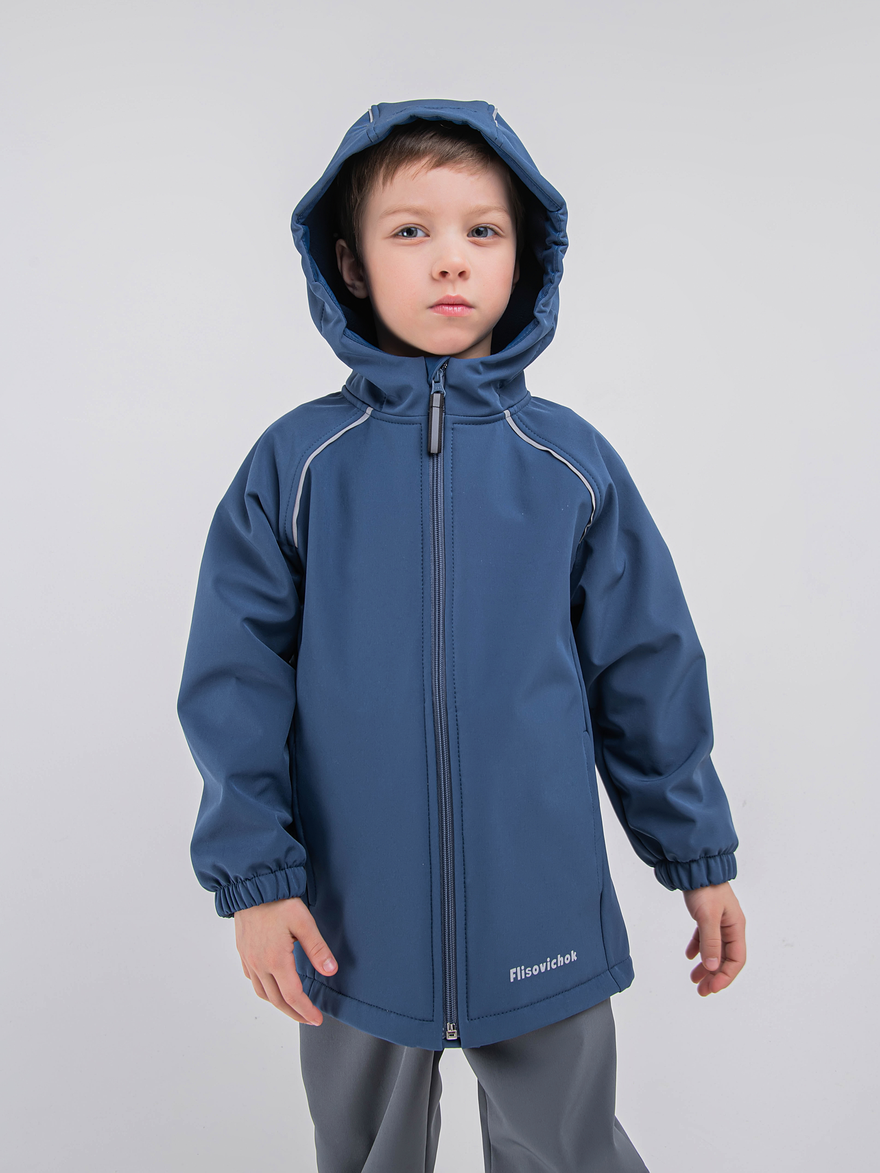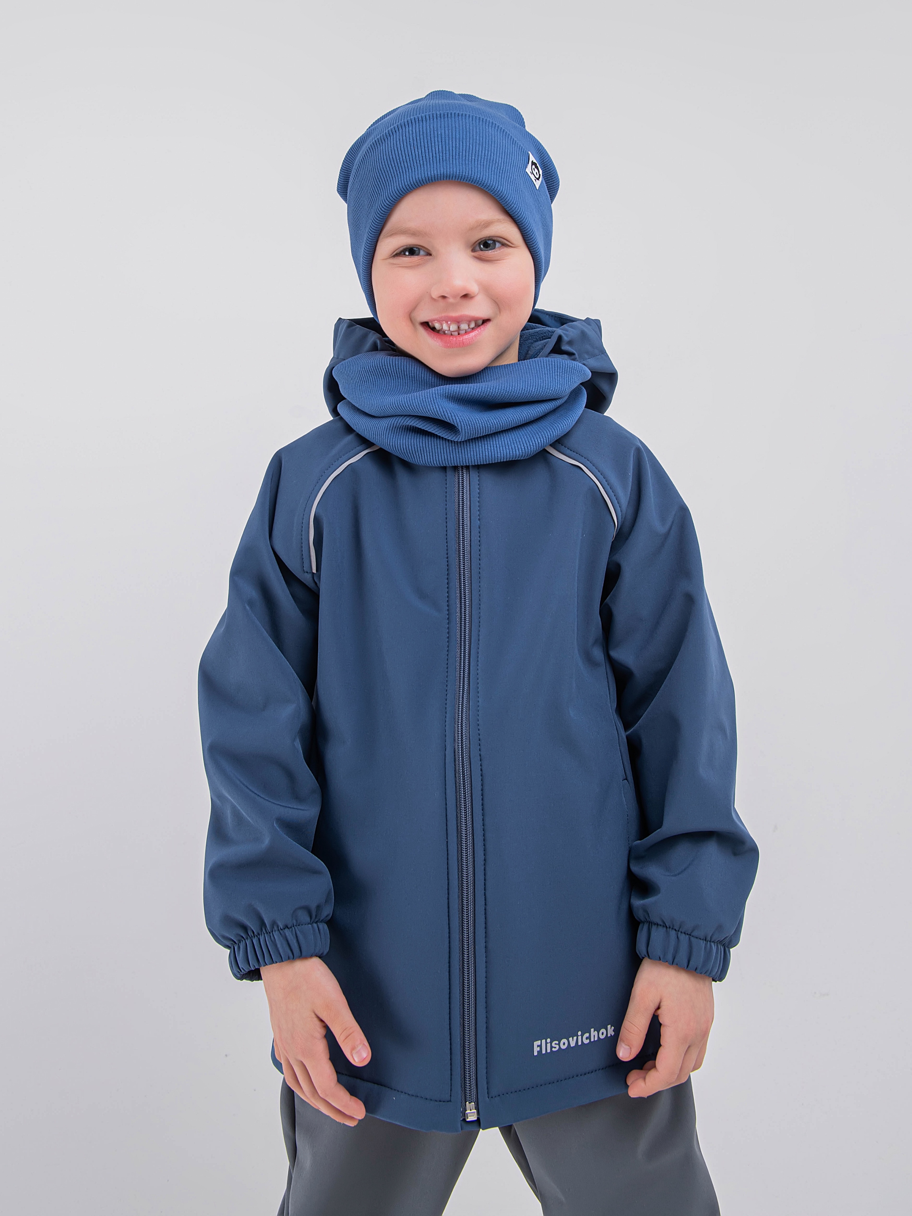 - Уникальный трехслойный мембранный материал софтшелл защищает от брызг и продувания, отводя лишнюю влагу от тела, если ребенок вспотел.