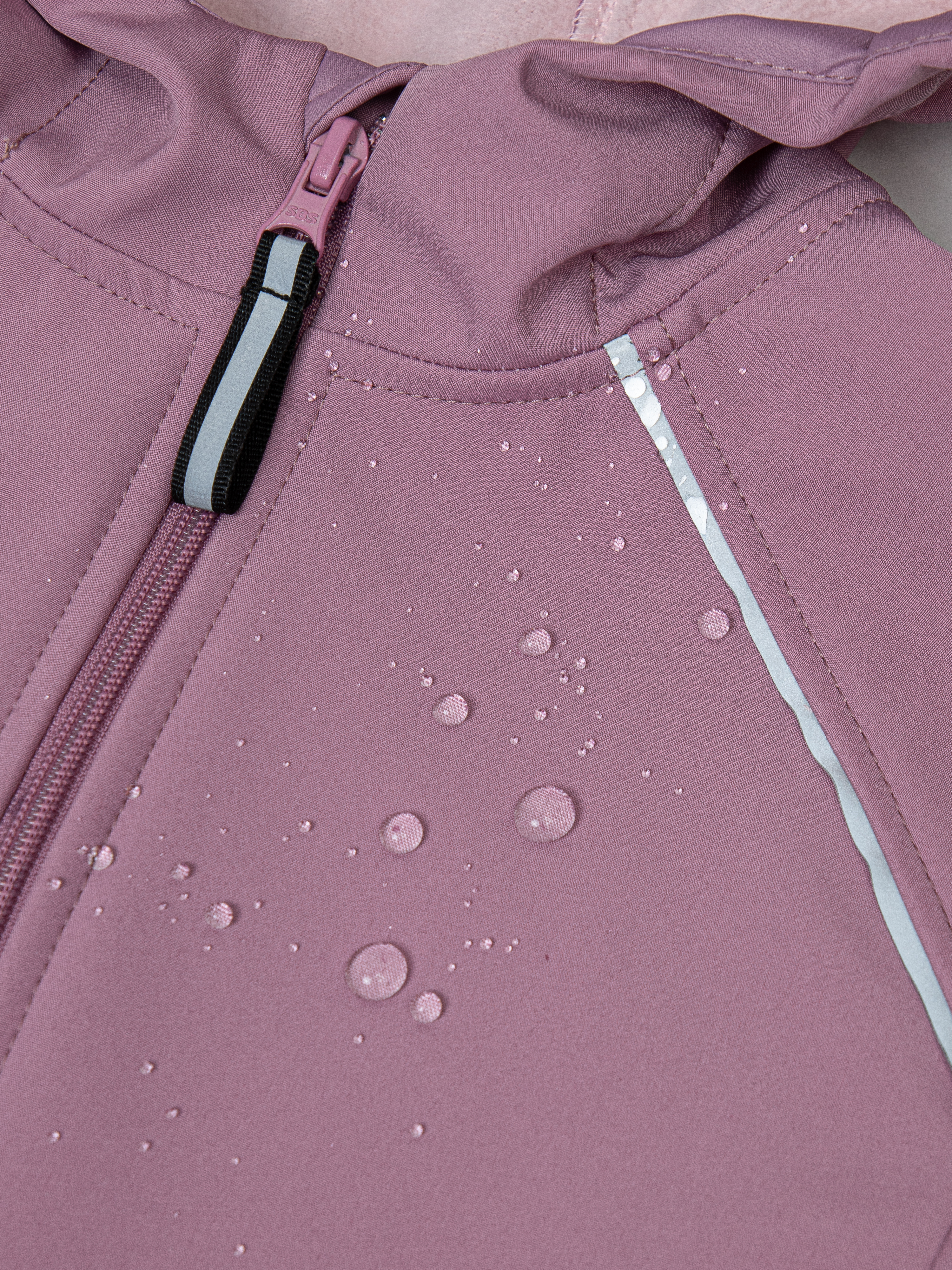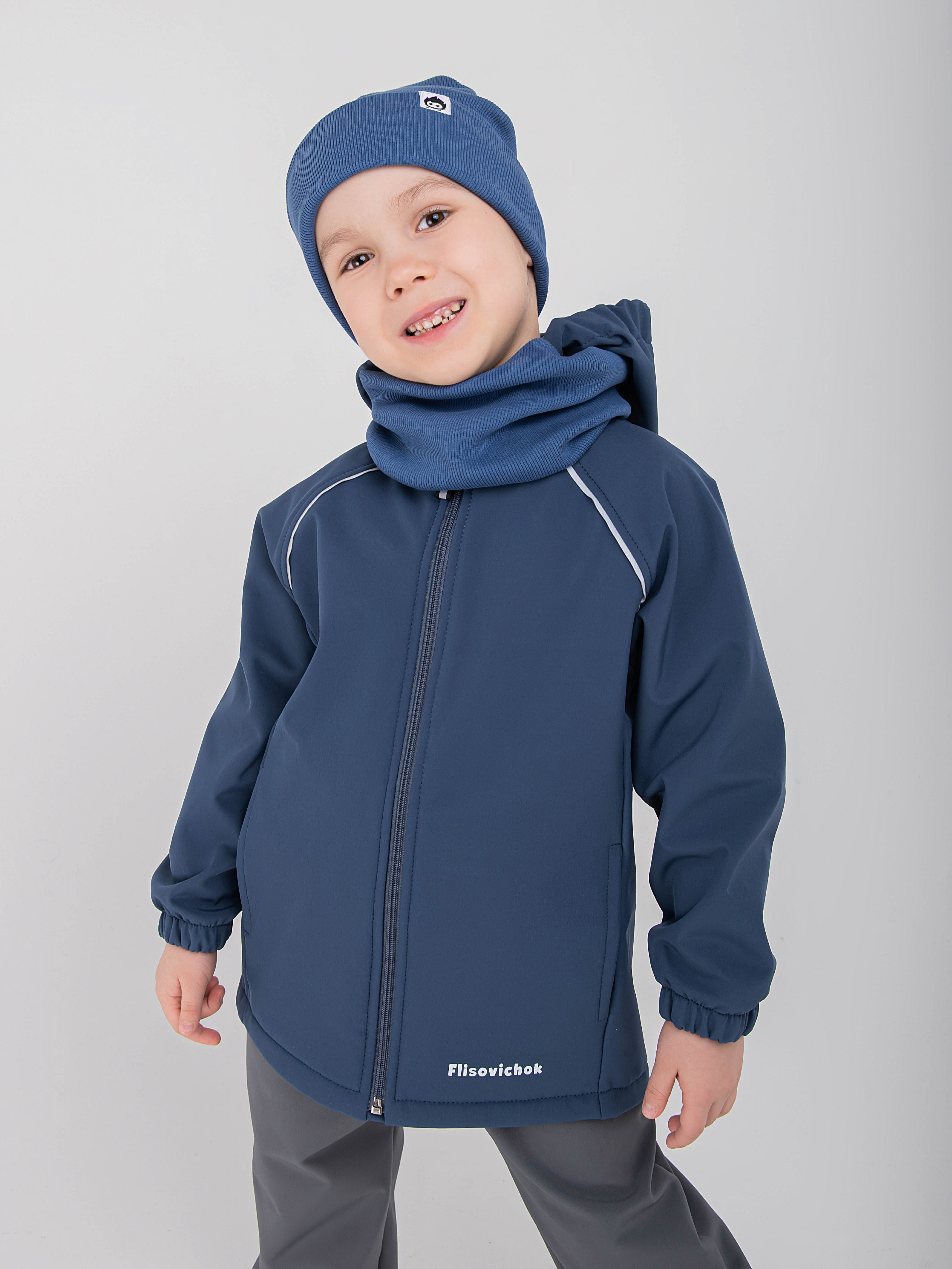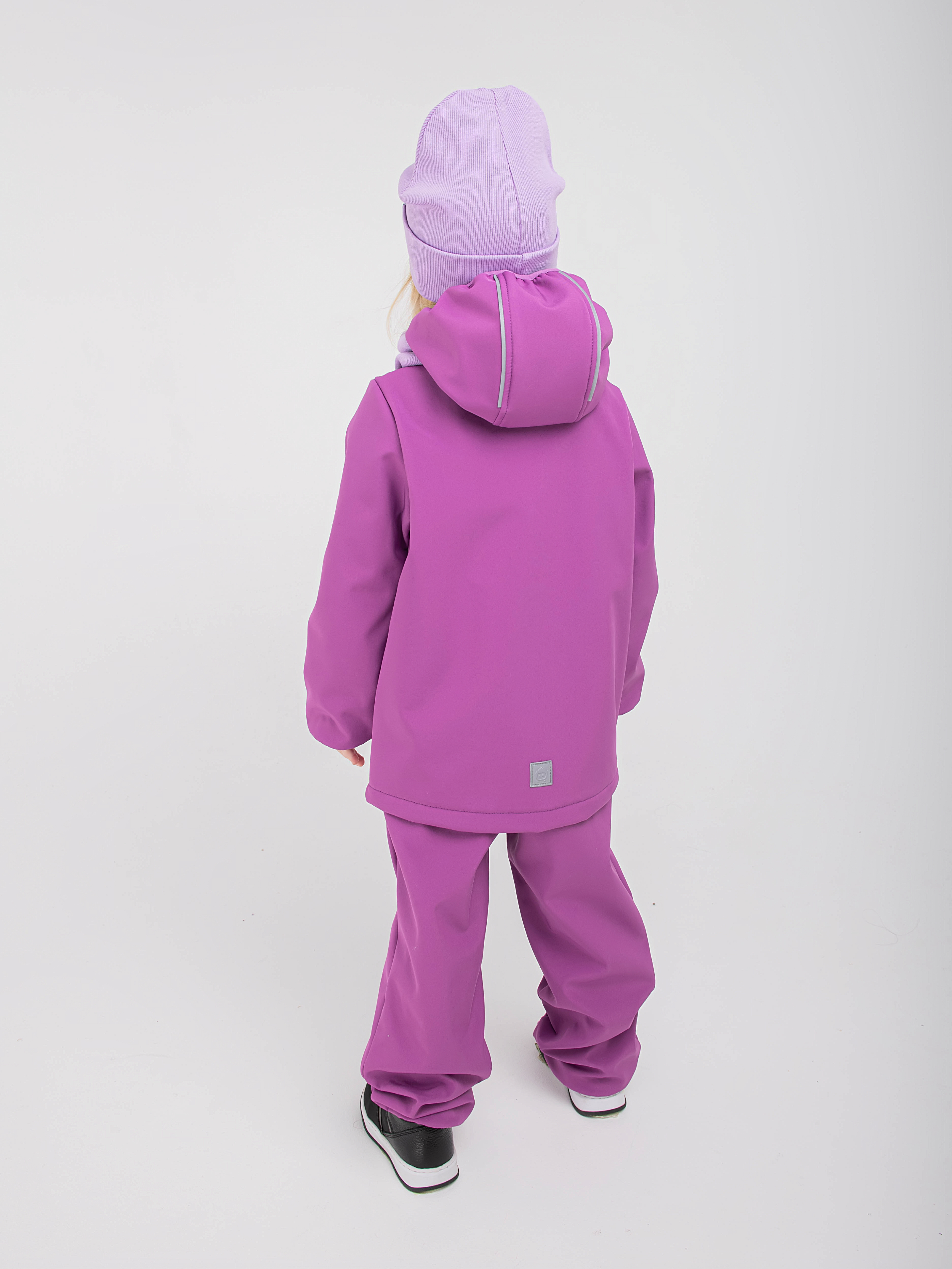 - Уникальный трехслойный мембранный материал софтшелл защищает от брызг и продувания, отводя лишнюю влагу от тела, если ребенок вспотел.