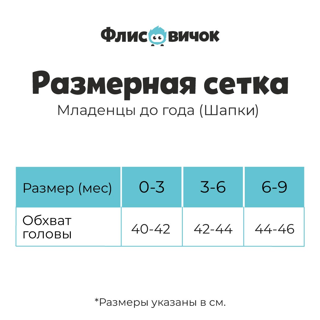 Флисовая шапка на подкладке из мягкого хлопкового трикотажа. Надежно фиксируется на голове с помощью липучки.