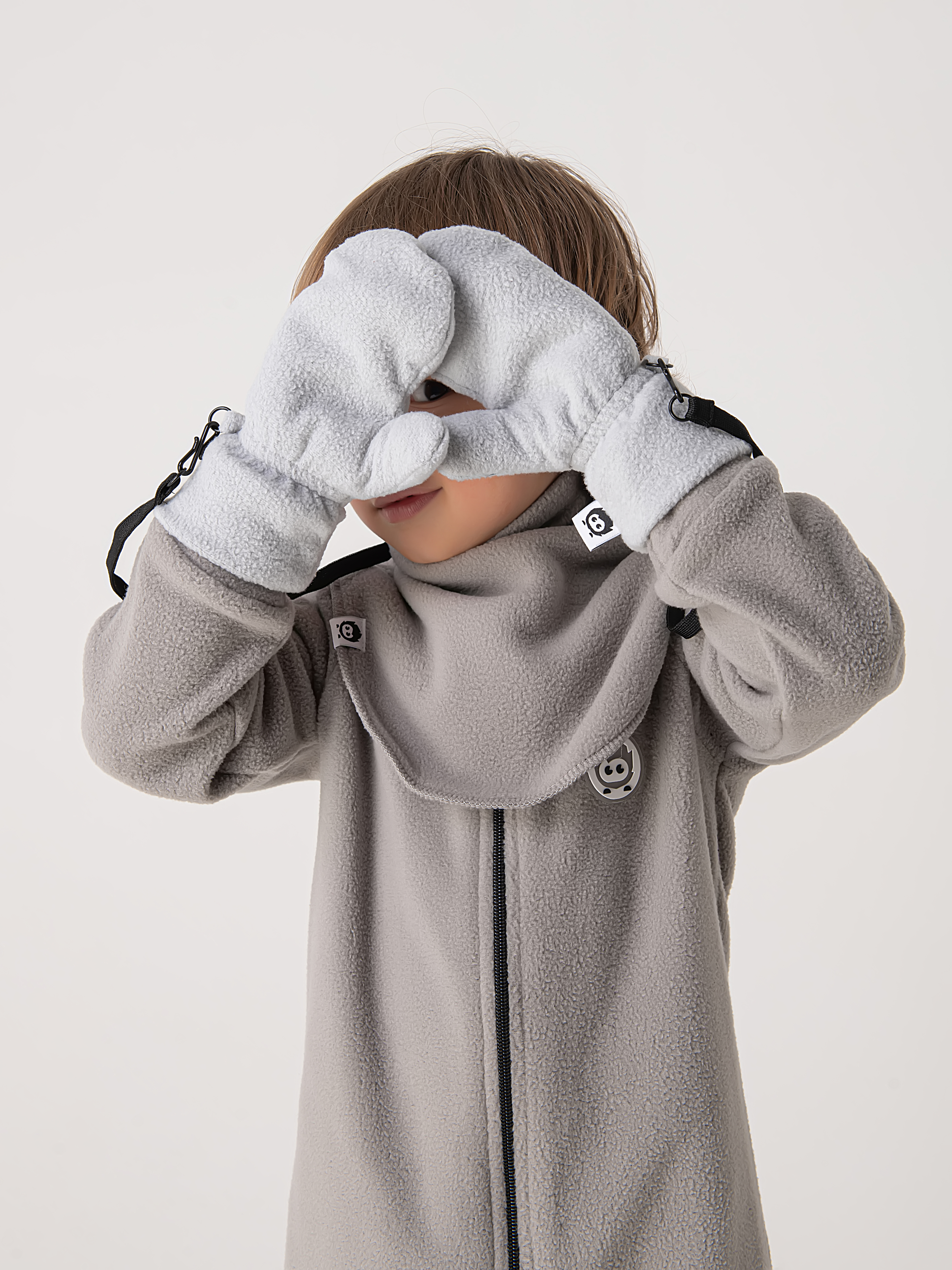 Варежки флисовые на шнурке с карабином "Пепельный"